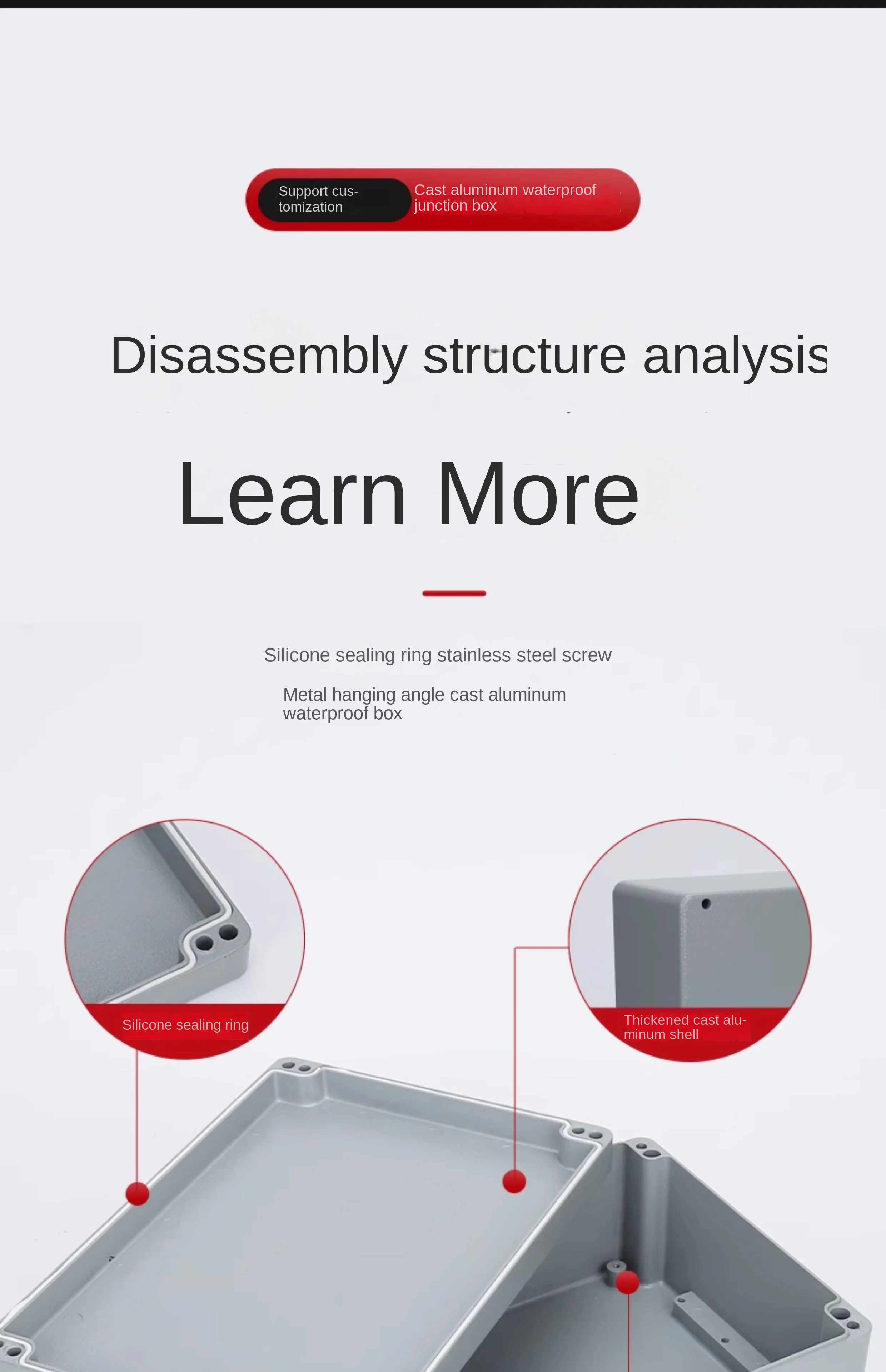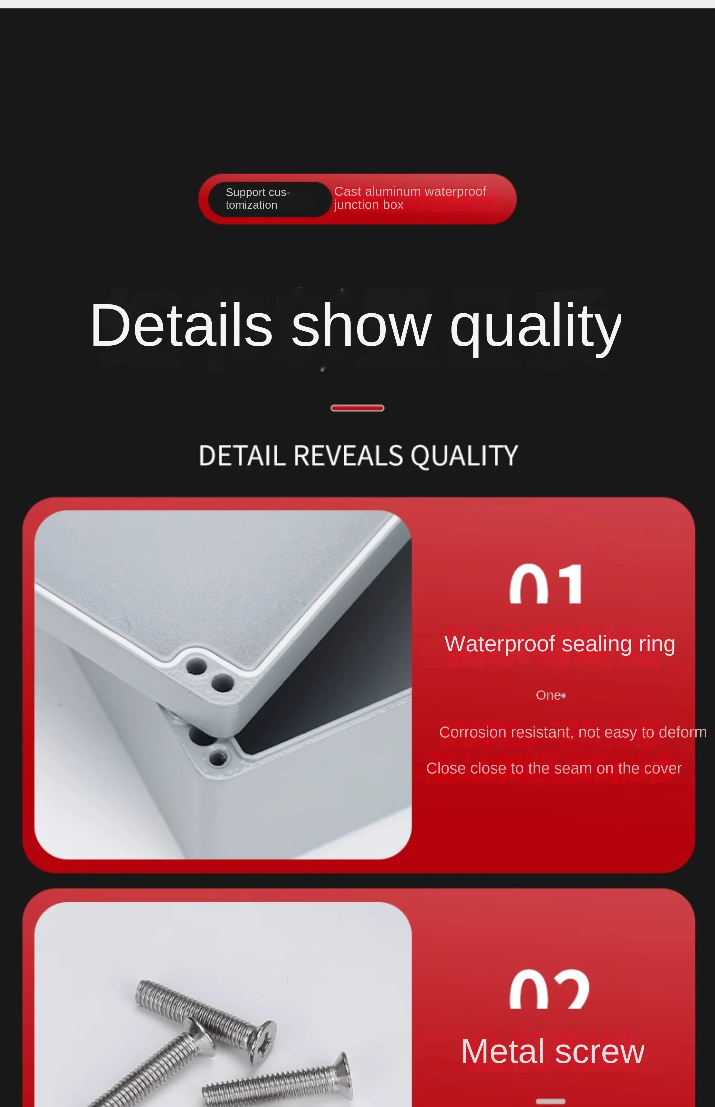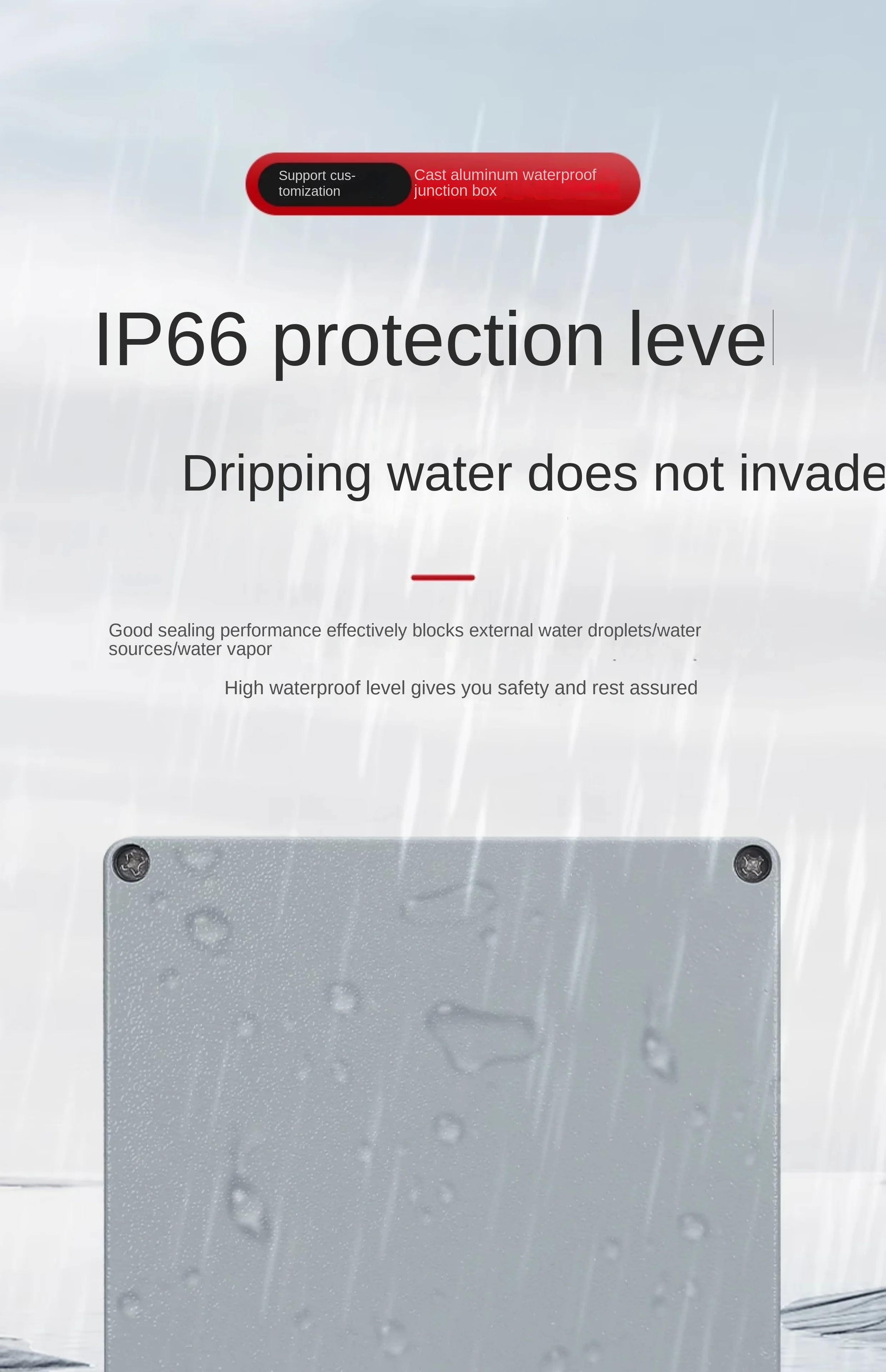 Industry IP66 Waterproof Cast Aluminum Junction Box for electronic project Outdoor Explosion-proof Electrical Enclosure CaseFA cast aluminum box series 1. Application: Mainly suitable for indoor and outdoor electrical, communication, firefighting equipment, iron and steel smelting, petrochemical industry, electronics, electricity, railways, construction sites, mines, mining farms, airports, hotels, ships, large factories, coastal factories, unloading Terminal equipment, sewage treatment facilities, environmental pollution facilities, etc .; ideal for industries requiring high electromagnetic shielding, ruggedness, and heat transfer. 2. Material: (ALSI12) cold die-casting molding, using phosphating spray external surface treatment process, so that the cast aluminum box has a stronger environmental adaptability than the plastic box, and also has explosion-proof, dust-proof, waterproof, anti-corrosion, anti-proof Static electricity, fast heat dissipation, flame retardant, electromagnetic wave shielding and other characteristics, high mechanical strength and other characteristics. 3. Protection level: Dust-proof level reaches IP66 or above, impact resistance and non-deformation level can reach IK 10, even if it rains heavily during operation and suffers huge impact, it will not enter the water and deform very safely.
