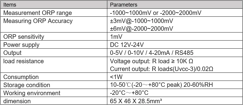 (-2000~2000mV range):ORP=ORP output voltage*400-2000;